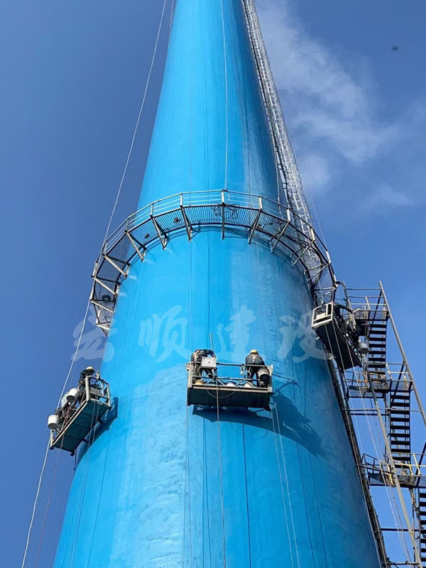 水塔粉刷公司(50米煙囪翻新)用煙囪外壁包裹鋼絲網加固來加強辦法:
