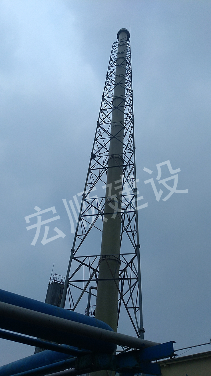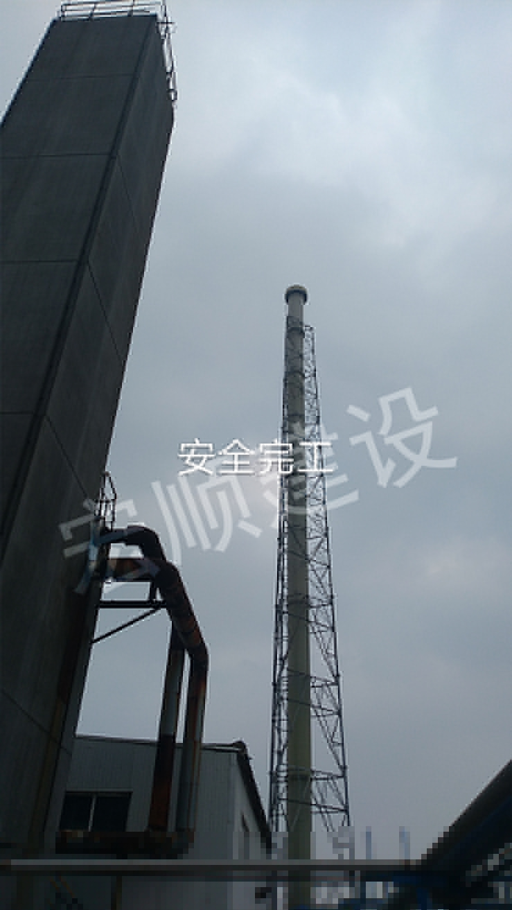 宏順建設(shè)施工人員到現(xiàn)場準(zhǔn)備煙囪避雷針安裝工作