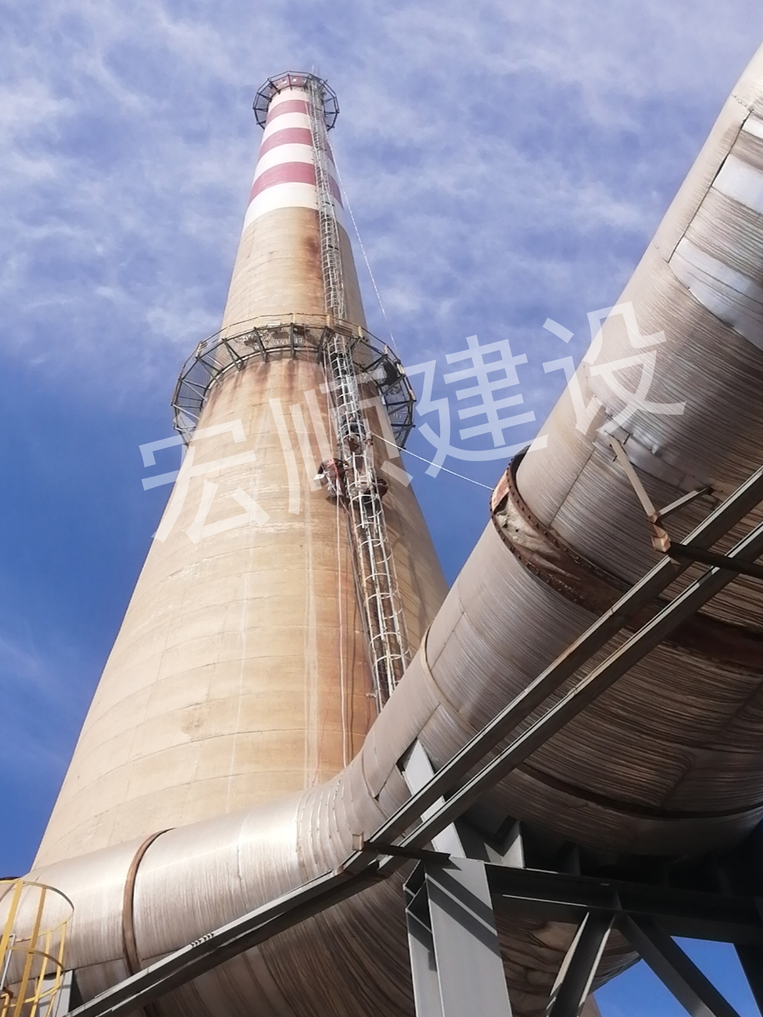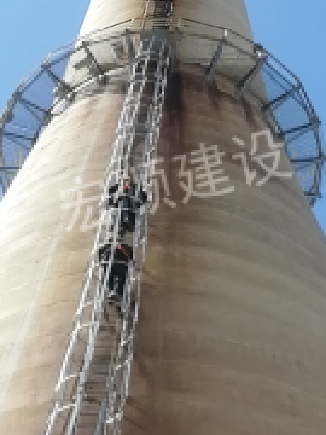 當水泥煙囪年代久了那就需要更換爬梯平臺或者除銹防腐了