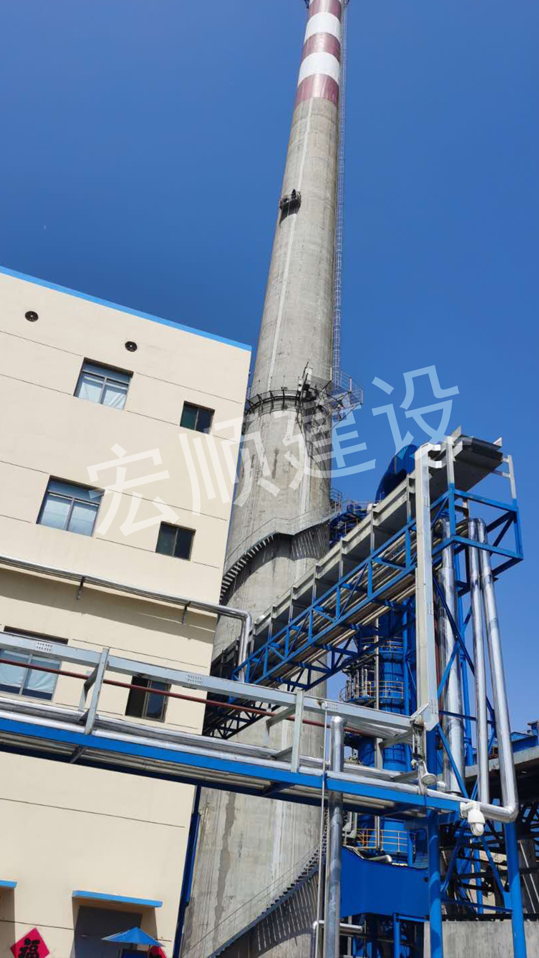 煙囪表面疏松部位那就需要聚合物砂漿修補,以提高鋼筋抗腐蝕、碳化能力。